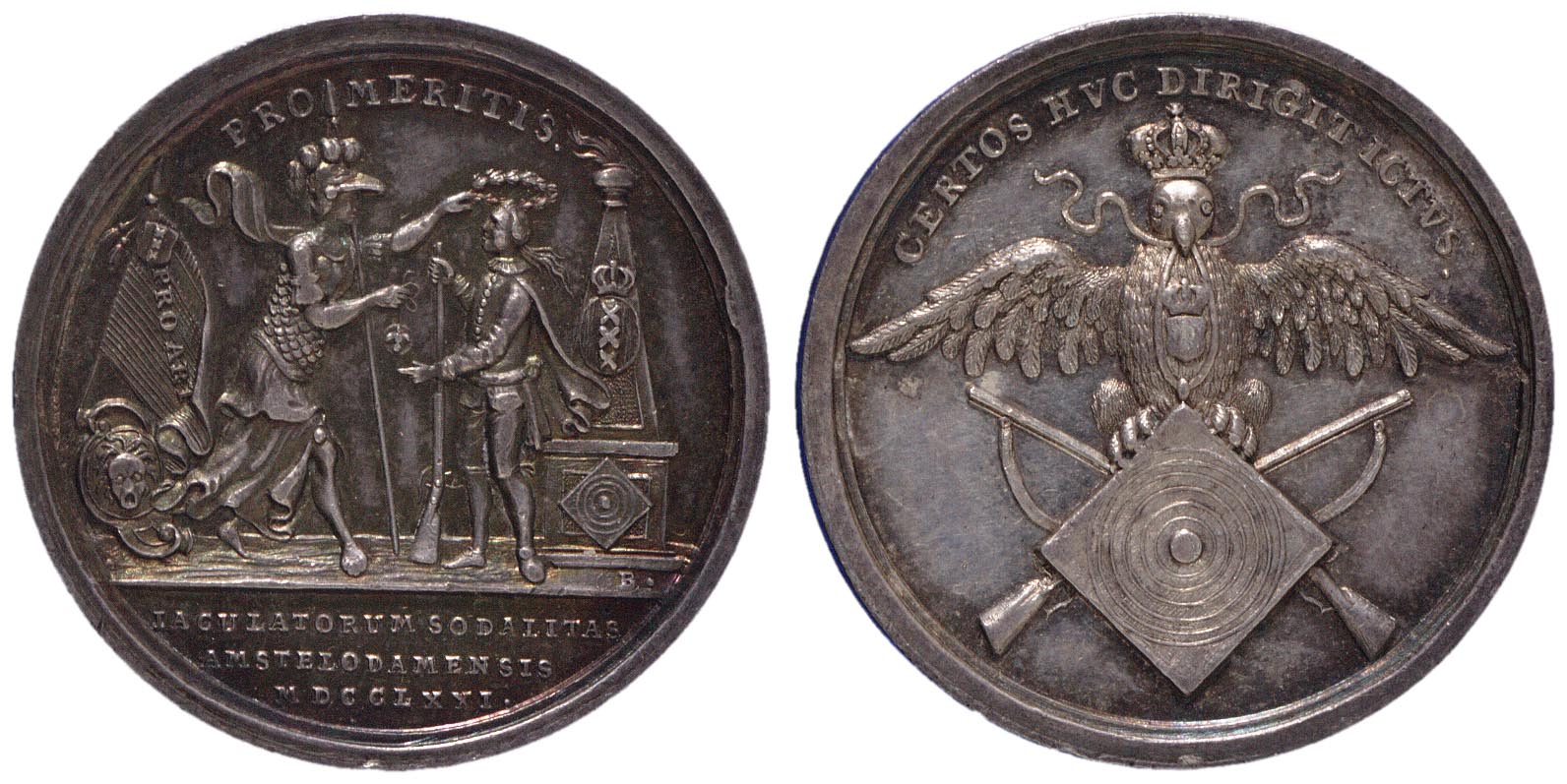 opschrift voorzijde: IACULATORUM SODATITAS / AMSTELODAMENSIS / MDCCLXXI.