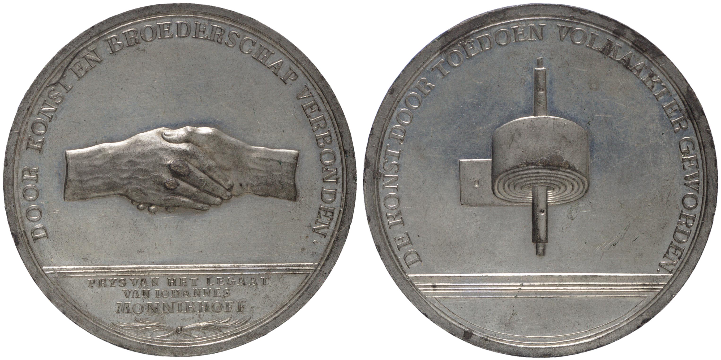 omschrift voorzijde: DOOR KONST EN BROEDERSCHAP VERBONDEN.