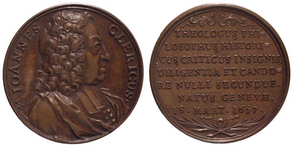 opschrift keerzijde: THEOLOGUS, PHI= / LOSOPHUS, HISTORI= / CUS, CRITICUS INSIGNIS, / DILIGENTIA ET CANDO= / RE NULLI SECUNDUS. / NATUS GENEVAE, / 19.MART.1657