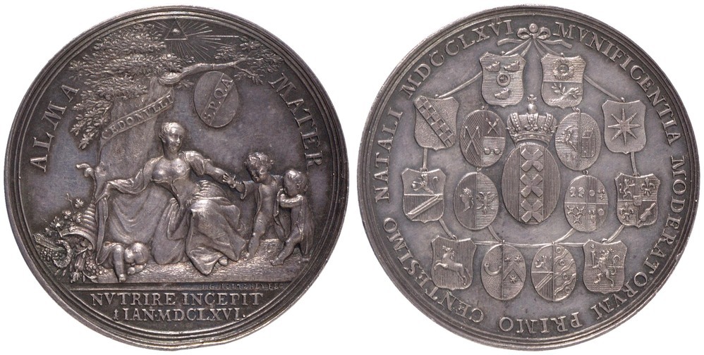 omschrift keerzijde: MVNIFICENTA MODERATORVM PRIMO CENTESIMO NATALIMDCCLXVI