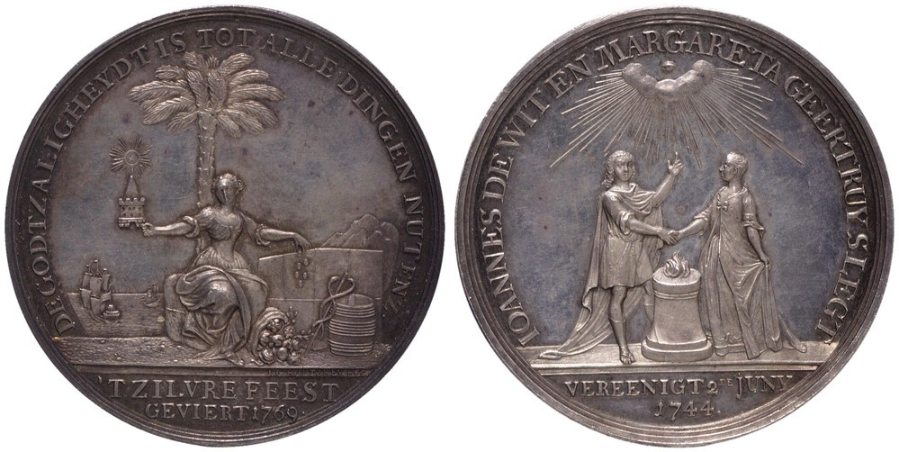 omschrift keerzijde: IOANNES DE WIT EN MARGARETA GEERTRUY SLEGT