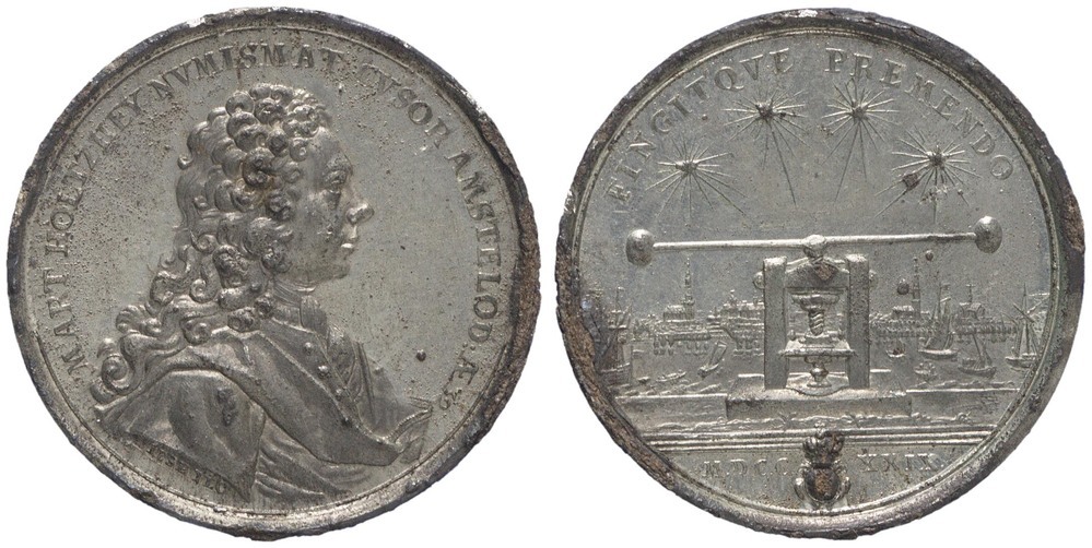 omschrift voorzijde: MART . HOLTZHEY NVMISMAT CVSOR AMSTELOD:Æ39