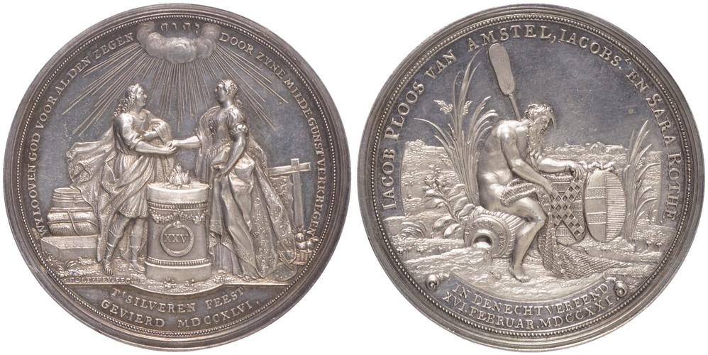 omschrift keerzijde: IACOB PLOOS VAN AMSTEL, JACOBS. EN SARA ROTHE.