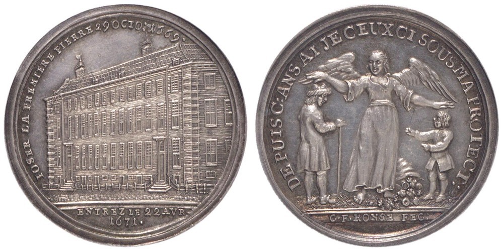 omschrift voorzijde: poser la premiere pierre 29 octo: 1669