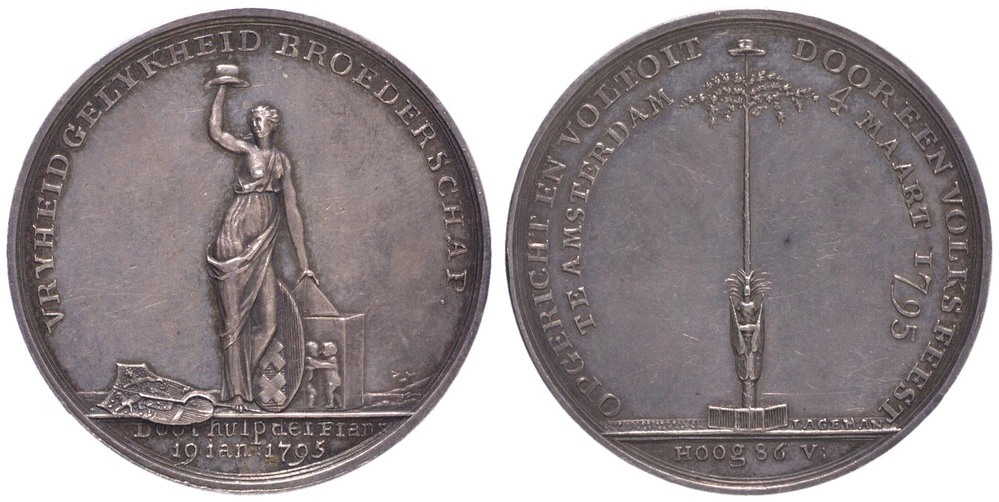 omschrift keerzijde: OPGERICHT EN VOLTOOIT DOOR EEN VOLKSFEEST / TE AMSTERDAM 4 MAART 1795