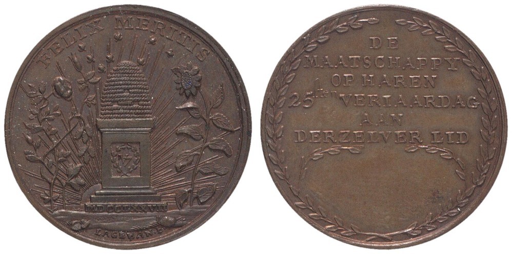 opschrift keerzijde: DE / MAATSCHAPPY / OP HAREN / 25 ste VERJAARDAG / AAN / DERZELVER LID