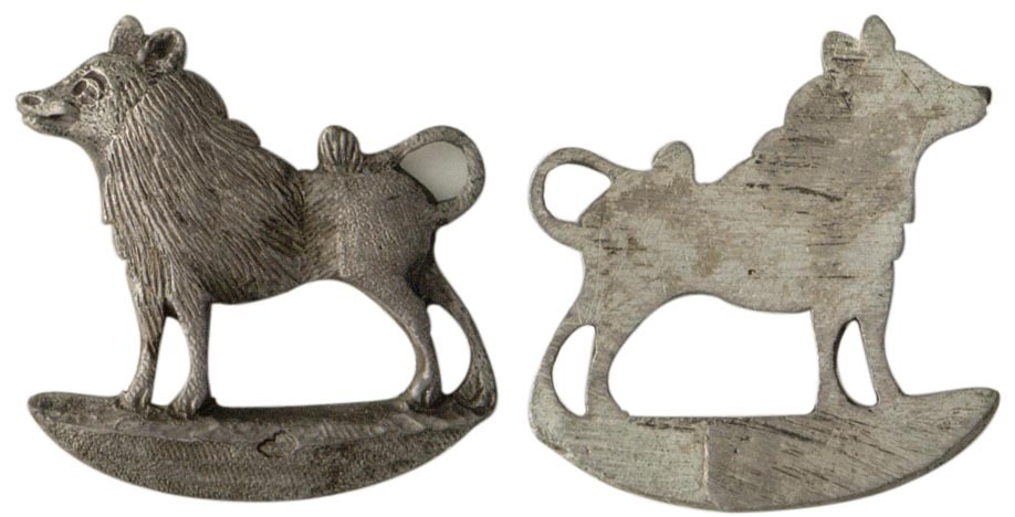 voorzijde: ajour bewerkte keeshond naar links op voetstuk. keerzijde: onbewerkt.- HerkomstSchenking G.A. Heineken, Amsterdam, 1885.