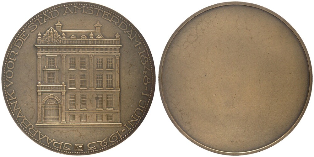 - omschrift voorzijde: SPAARBANK VOOR DE STAD AMSTERDAM - 1848 = 1 JUNI - 1925