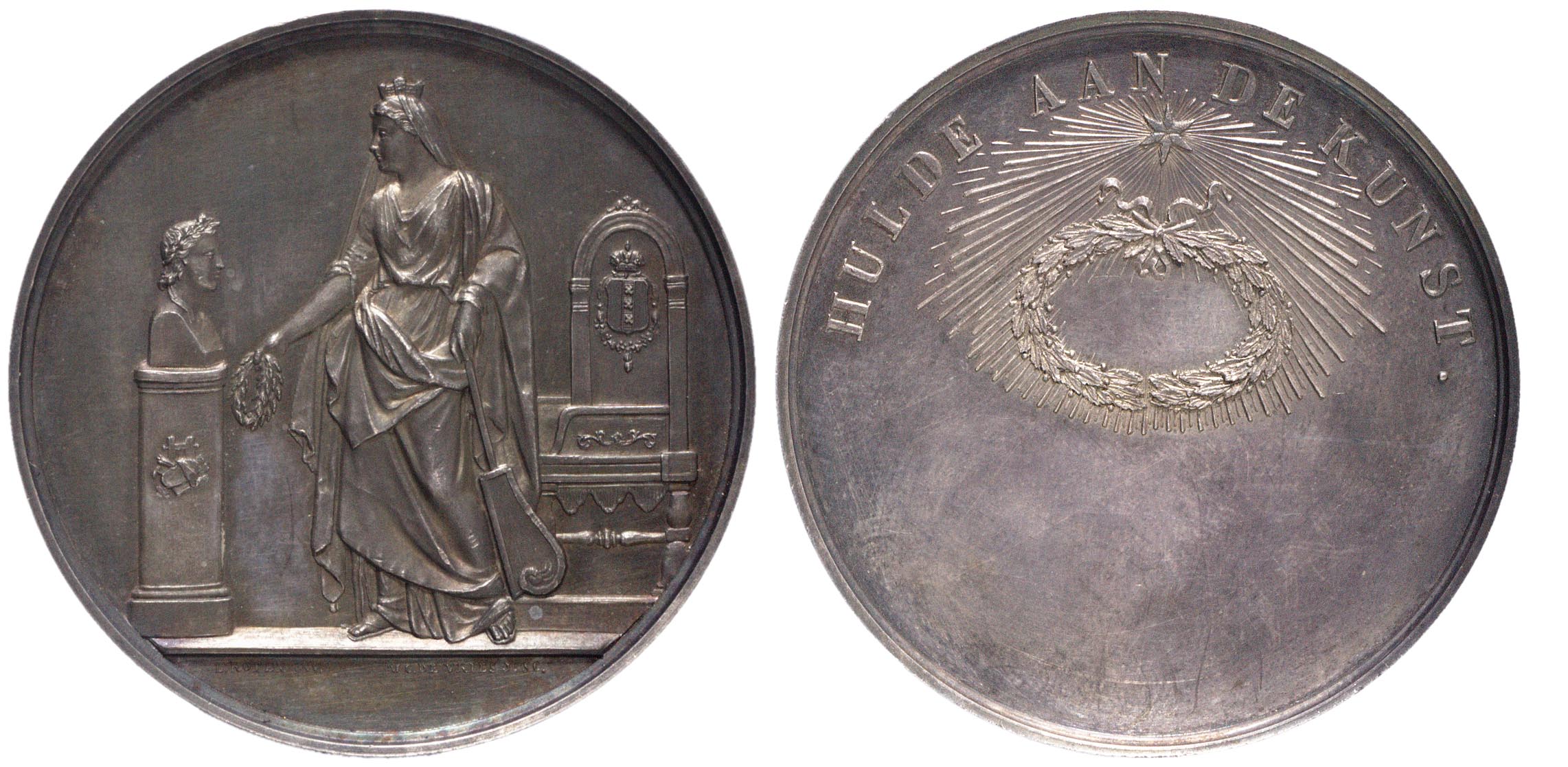 omschrift keerzijde boven: HULDE AAN DE KUNST.