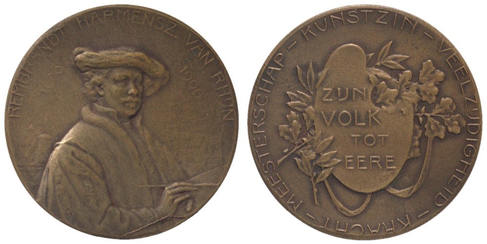 omschrift voorzijde: REMBRANDT HARMENSZ. VAN RHIJN / 1606 - 1906