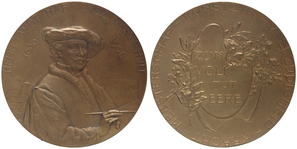 omschrift voorzijde: REMBRANDT HARMENSZ. VAN RHIJN / 1606 - 1906