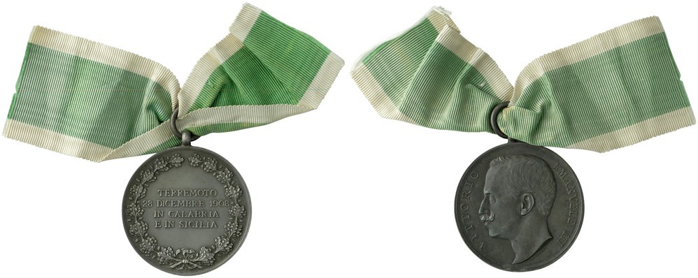 opschrift keerzijde: TERREMOTO / 28 DECEMBRE 1908 / IN CALABRIA / E IN SICILIA