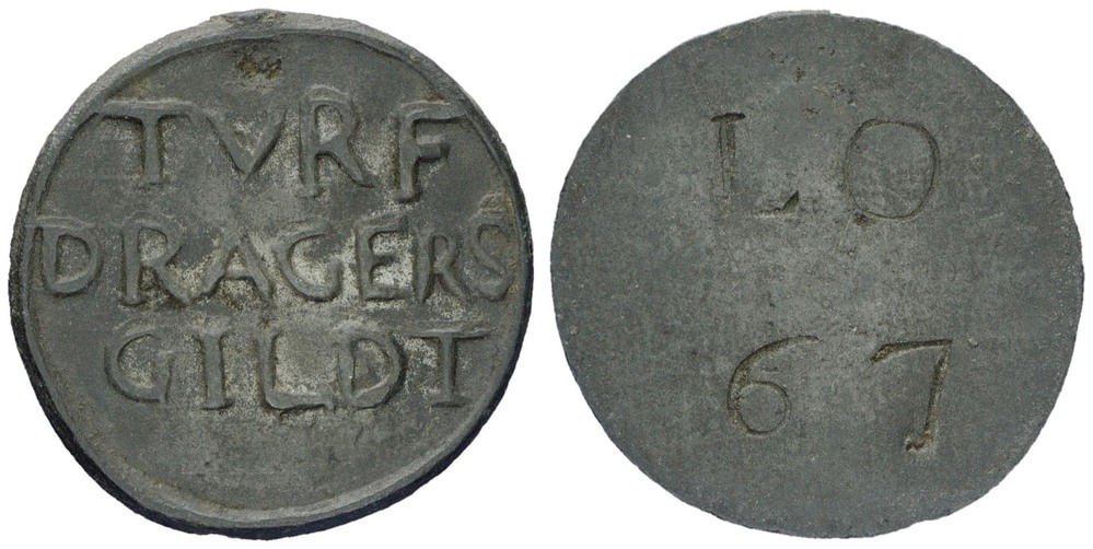 voorzijde: naam van het gilde. keerzijde: letters en een nummer.- Trefwoorden