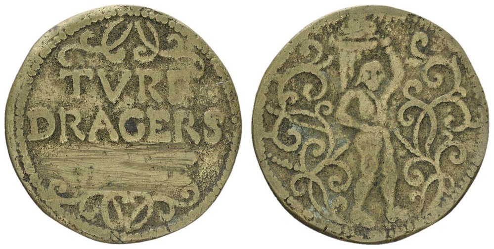 - opschrift voorzijde midden: TVRF / DRAGERS / : op de voorzijde is het woord GILDT weggegraveerd
