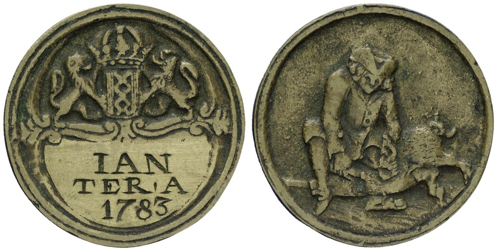 signatuur voorzijde in het schild onder het wapen van Amsterdam: IAN / TER 'A