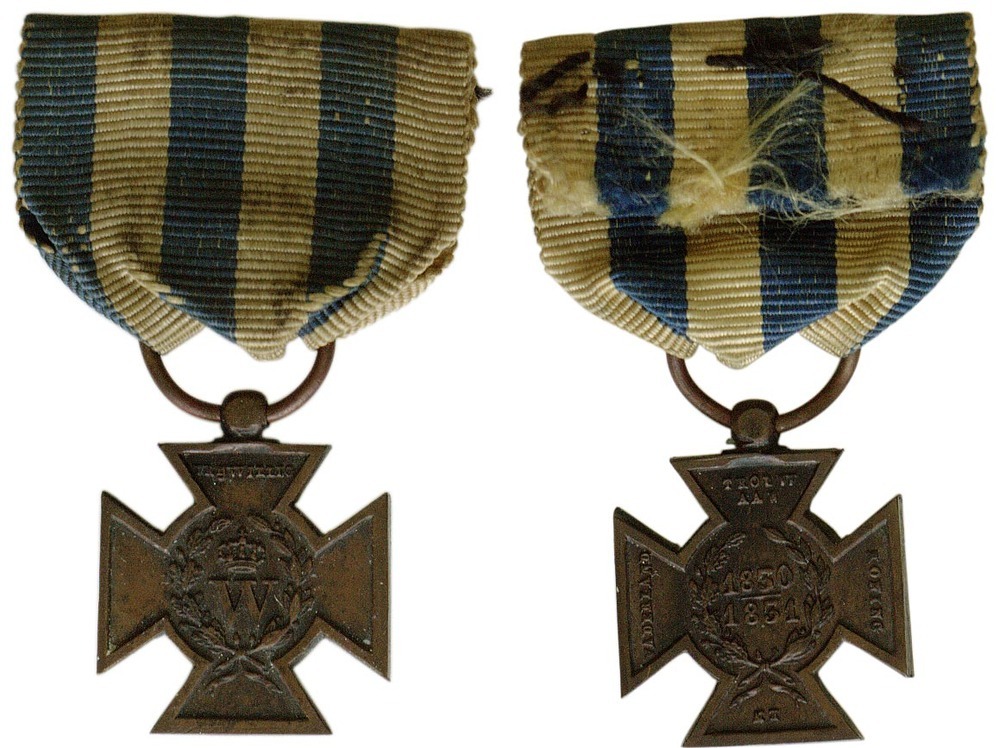 keerzijde: deze heeft dezelfde krans als aan de voorzijde, waarbinnen de jaartallen "1830-1831" gegraveerd zijn. Op de armen van het kruis is de tekst "TROUW AAN / KONING / EN / VADERLAND" te lezen. Het lint is verdeeld in zes gelijke banen nassaublauw en oranje, beginnend aan de linkerzijde met een blauwe baan.