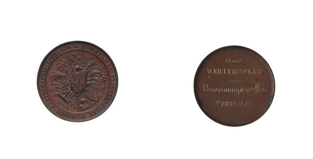 opschrift keerzijde: Aan / WED. J>I>HUNCK & ZN / voor / IJzeren Tuinsieraden / 1E PRYS 1872