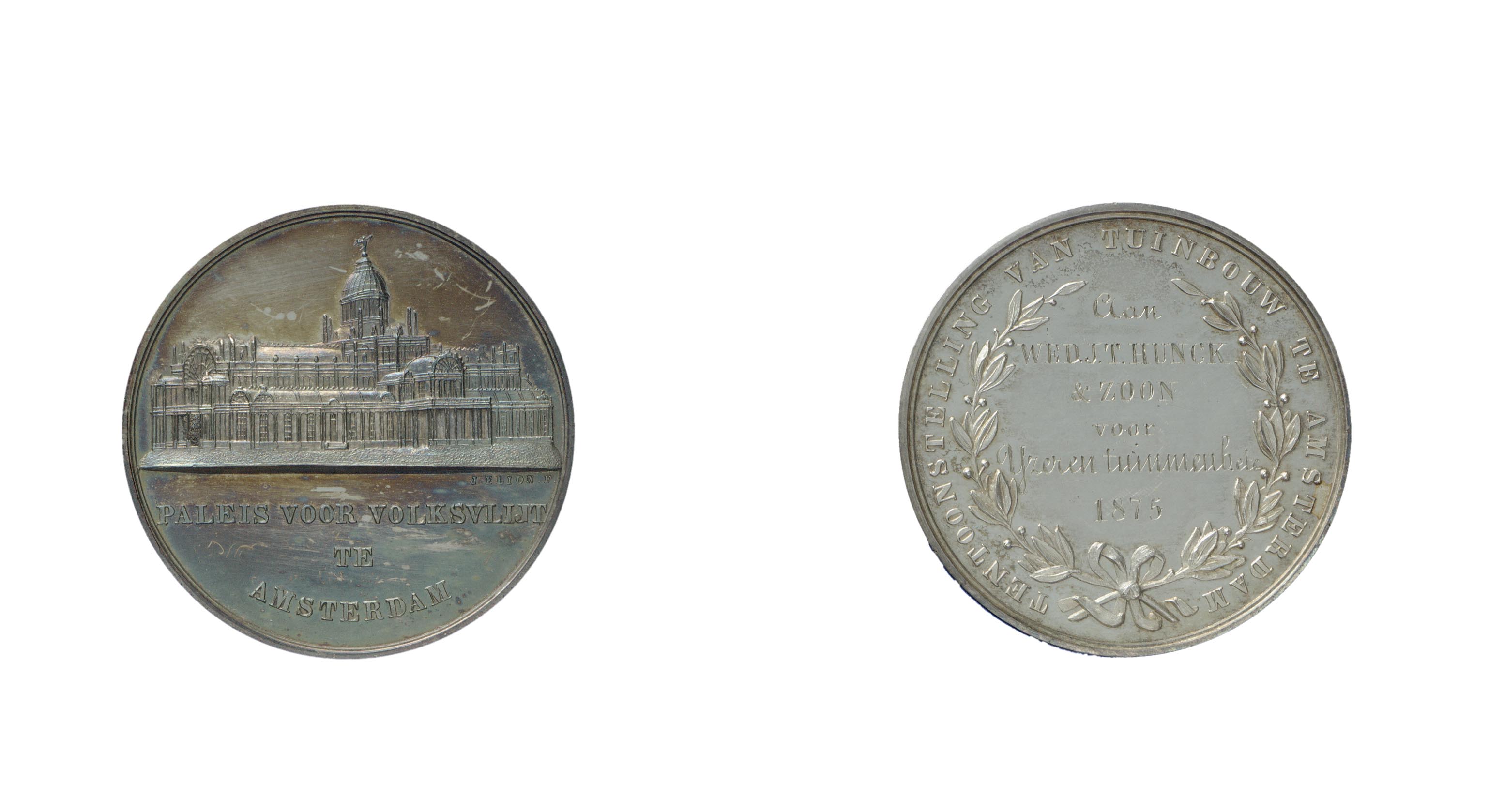 opschrift keerzijde: Aan / WED.J.T. HUNCK / & ZOON / voor / IJzeren tuinmeub. etc / 1875