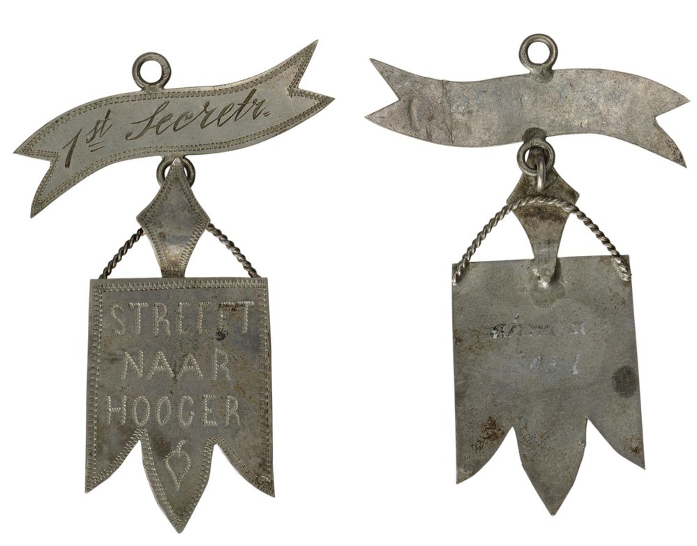 opschrift voorzijde op zilveren lint: 1st Secrtr.