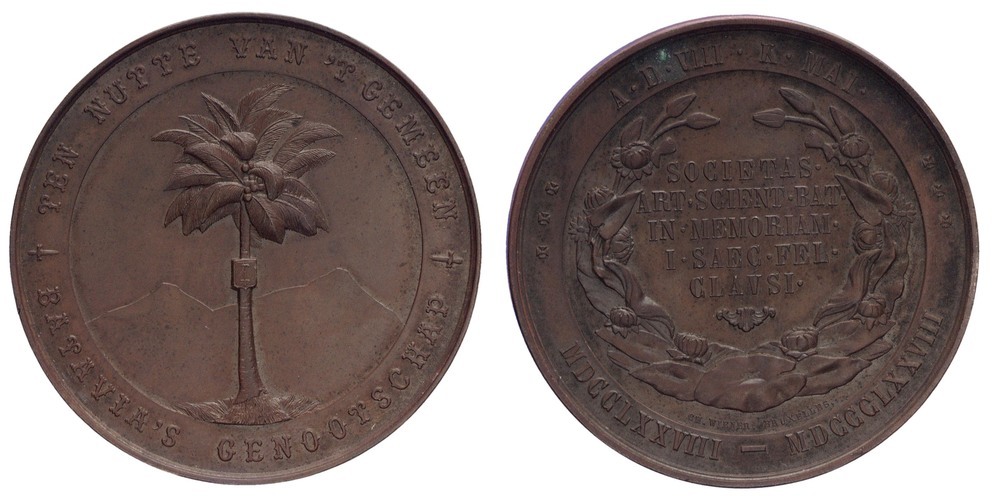 opschrift keerzijde: SOCIETAS / ART.SCIENT.BAT / IN.MEMORIAM / I.SAEC.FEL / CLAVSI