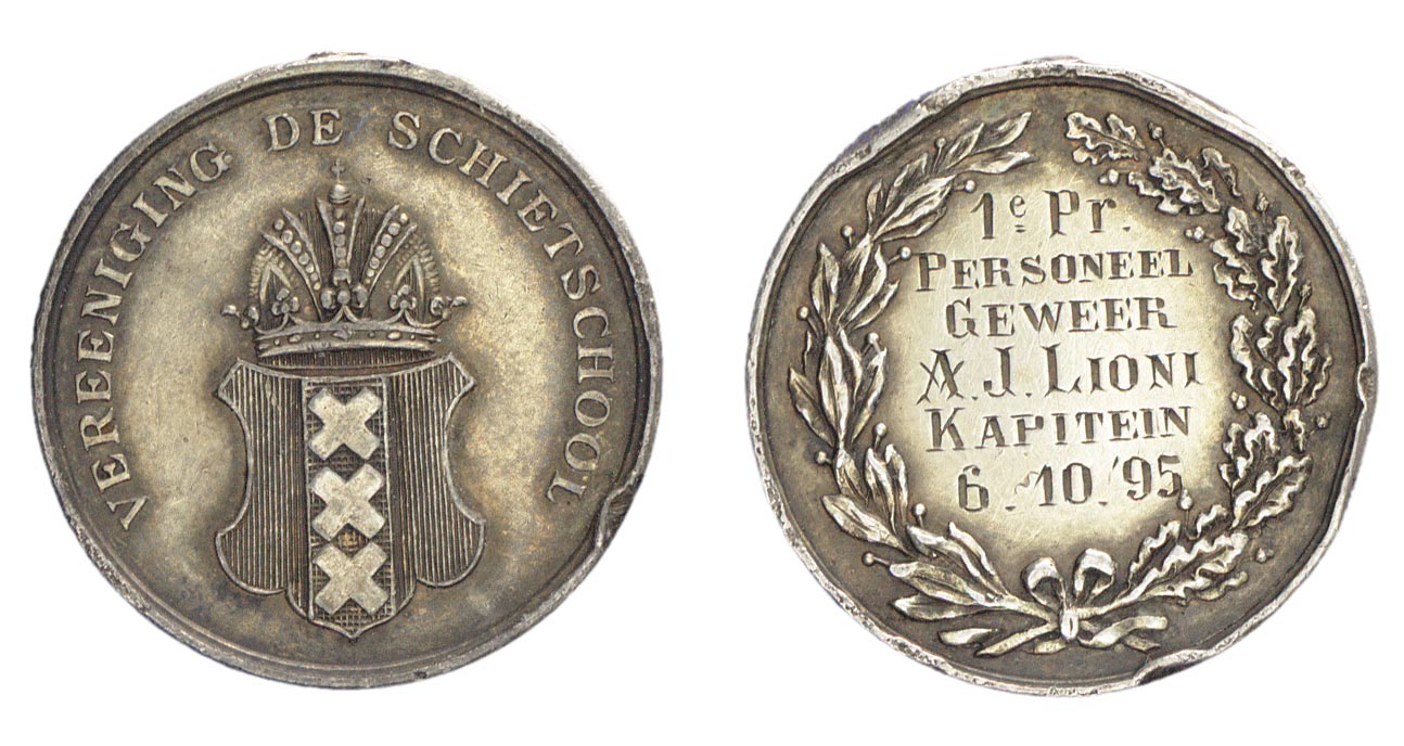 opschrift keerzijde: 1e Pr / PERSONEEL / GEWEER / A.J.LIONI / KAPITEIN / 6-10-'95