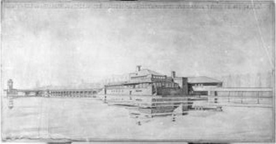 Ontwerp Amstelbrug (Berlagebrug) Amsterdam-Zuid en arcaden aan Amsteldijk met Amstelpaviljoen (naar H.P. Berlage)