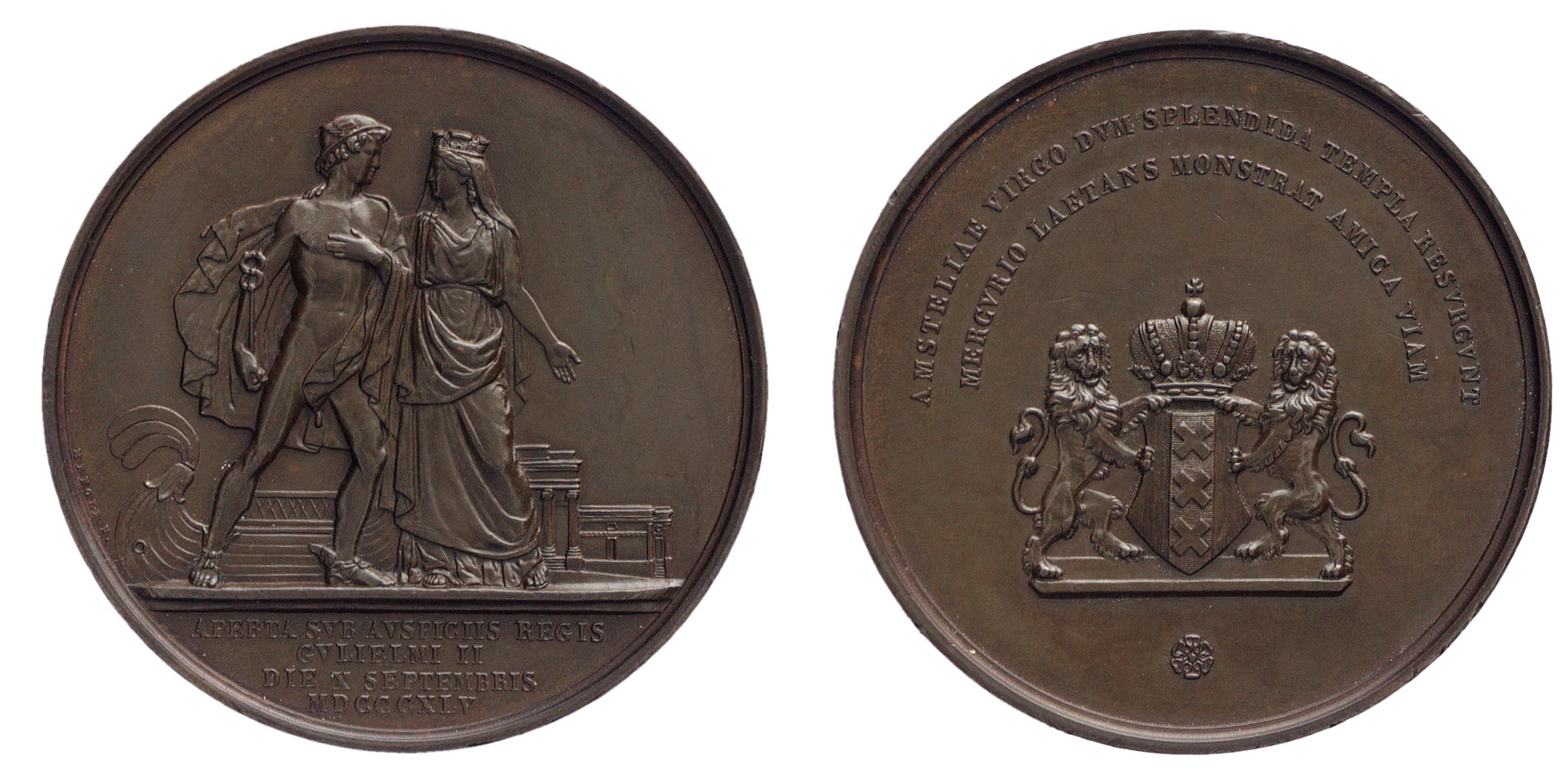 opschrift voorzijde in de afsnede: APERTA SVB AVSPICIIS REGIS GVLIELMI II DIE X SEPTEMBRIS MDCCCXLV