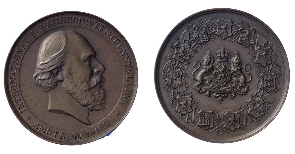omschrift voorzijde: INTERNATIONALE LANDBOUWTENTOONSTELLING * AMSTERDAM 1884 *