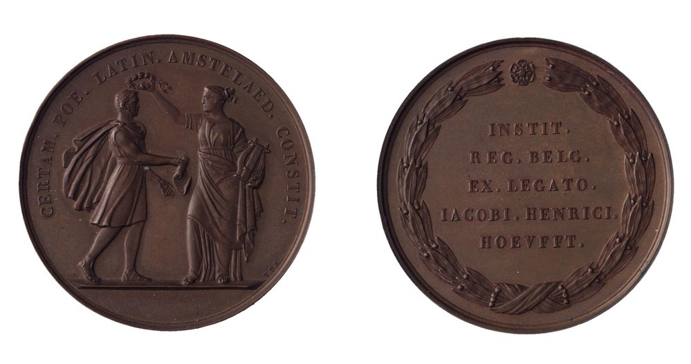 opschrift keerzijde: INSTIT.REG.BELG.EX.LEGATO.IACOBI.HENRICI.HOEVFFT.