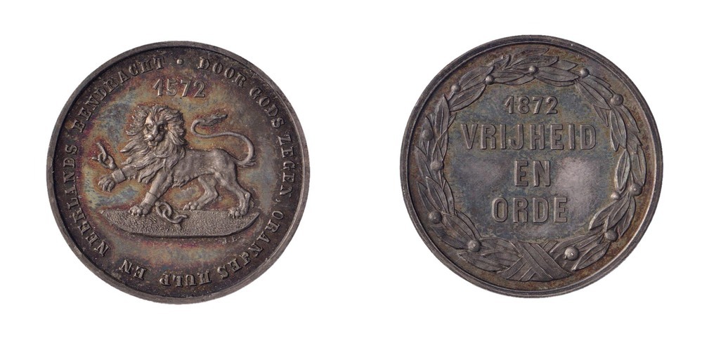 opschrift keerzijde: 1872 / VRIJHEID / EN / ORDE