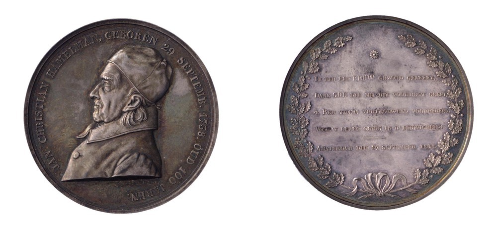 omschrift voorzijde: JAN CHRISTIAN HAMELMAN, GEBOREN 29 SEPTEMB. 1738. OUD 100 JAREN.