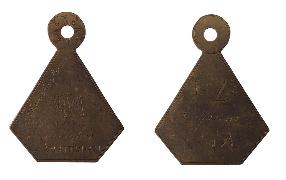 keerzijde: langs de rand een groeve; in het veld gegraveerd: No. D / Cigareur / No. 18