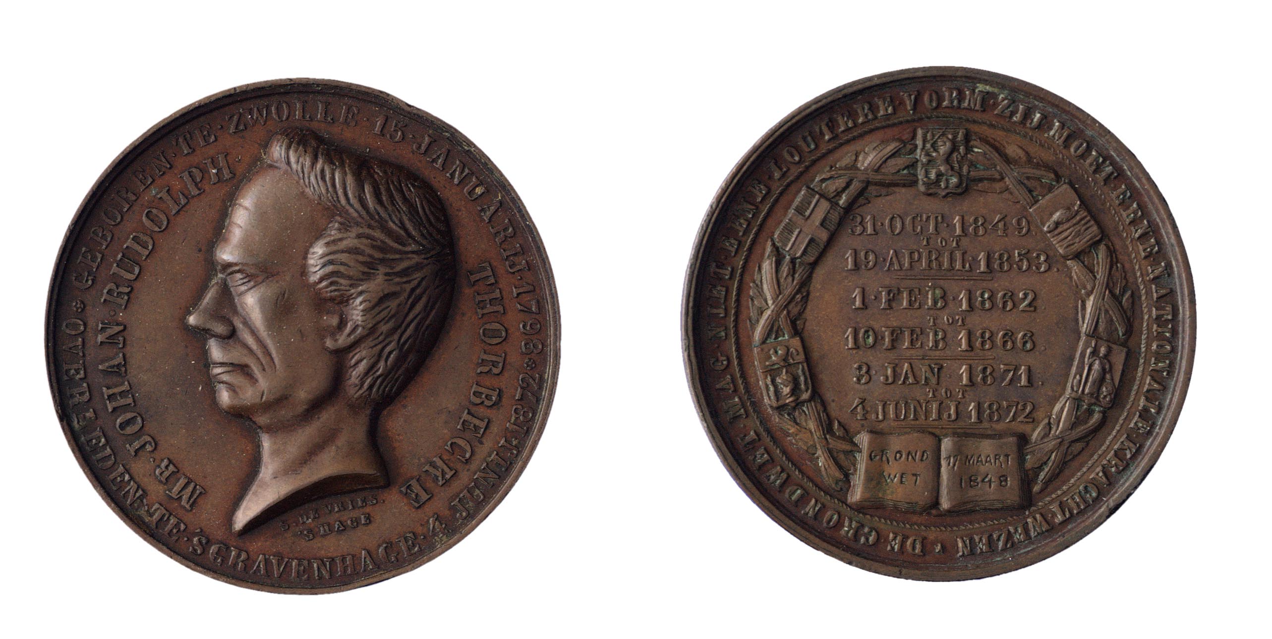 omschrift voorzijde: mr. Johan Rudolph Thorbecke-geboren te Zwolle 15 januarij 1798-overleden te 's Gravenhage 4 junij 1872