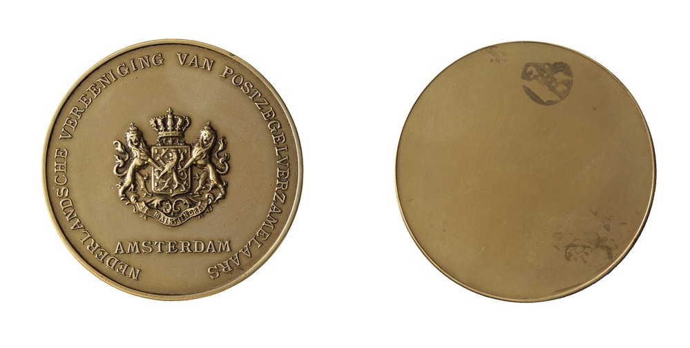 omschrift voorzijde: NEDERLANDSCHE VEREENIGING VAN POSTZEGELVERZAMELAARS AMSTERDAM