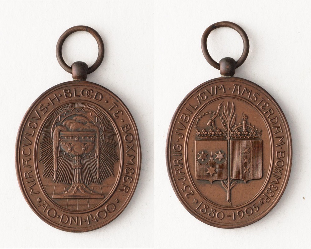 omschrift keerzijde: 25.JARIG.JVBILAEUM.AMSTERDAM.BOXMEER*1880-1905*