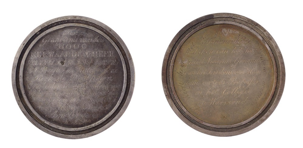 opschrift keerzijde: Kanunnik en / Deken van het Ka / pittel; Vicarius Generalis / van het Bisdom van Haar / lem; eertijds Professor / in het Collegie / te Warmond