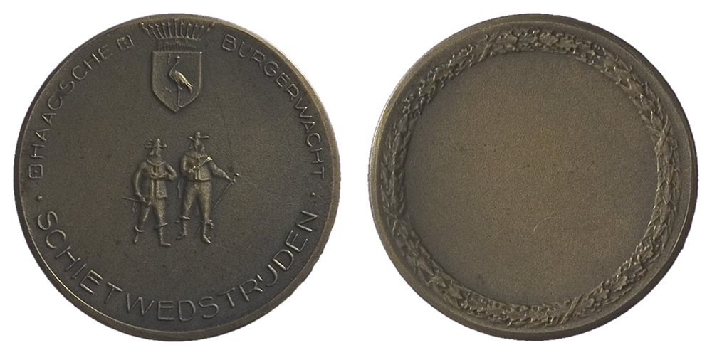 - omschrift voorzijde: HAAGSCHE BURGERWACHT / .SCHIETWEDSTRIJDEN.