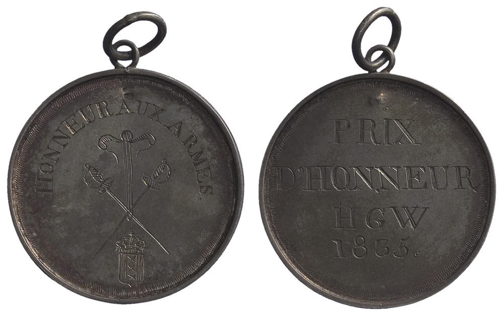 opschrift keerzijde: PRIX / D'HONNEUR / HGW / 1835