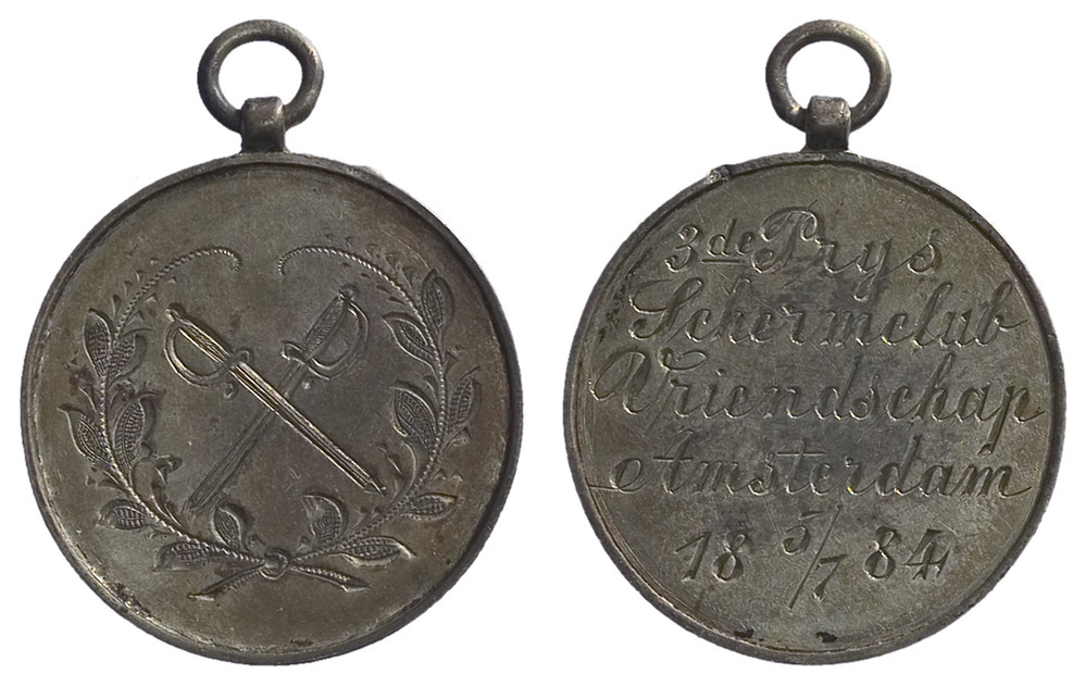 - opschrift keerzijde: 3e Prijs / Schermclub / Vriendschap / Amsterdam / 18 3/7 84