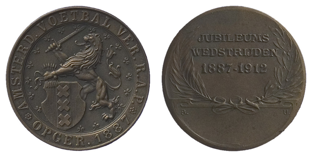omschrift voorzijde: AMSTERDA. VOETBAL VER. R.A.P. * OPGER. 1887 *