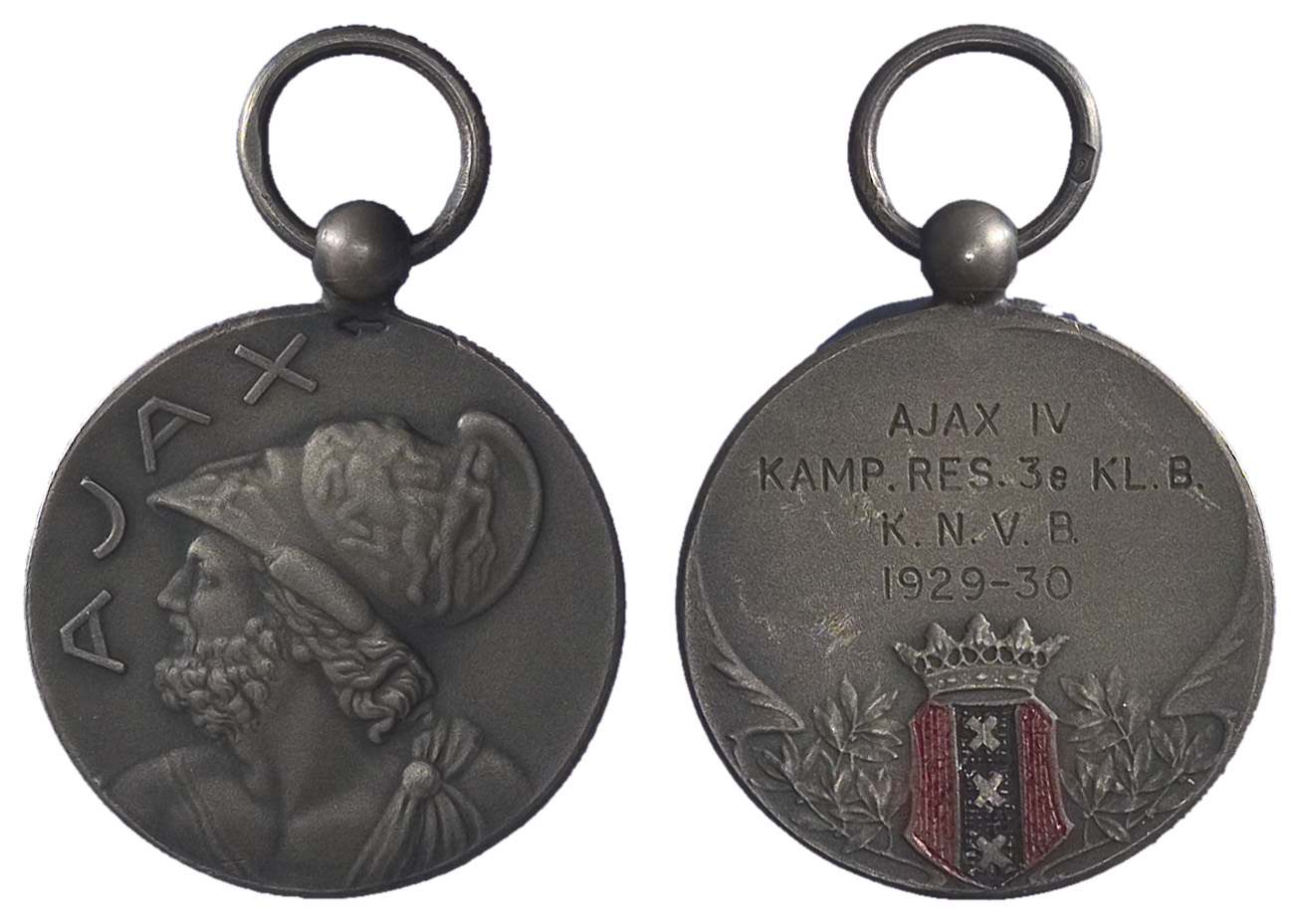 opschrift keerzijde: AJAX IV / KAMP. RES. 3e KL. B. / KNVB 1929-30