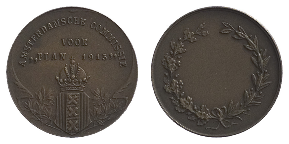 - omschrift en opschrift voorzijde: AMSTERDAMSCHE COMMISSIE / VOOR / "PLAN 1913"