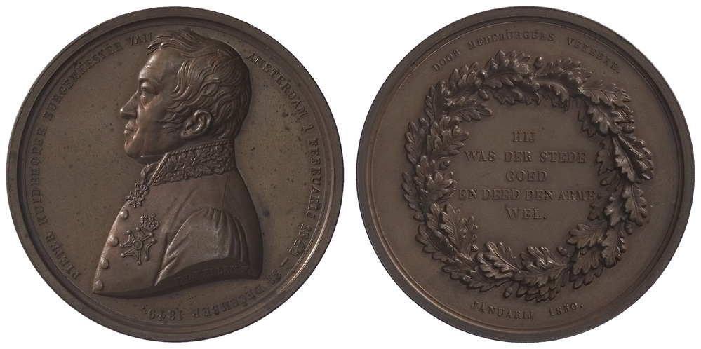 omschrift voorzijde: PIETER HUIDEKOPER BURGEMEESTER VAN - AMSTERDAM 1 FEBRUARIJ 1842 - 31 DECEMBER 1849.