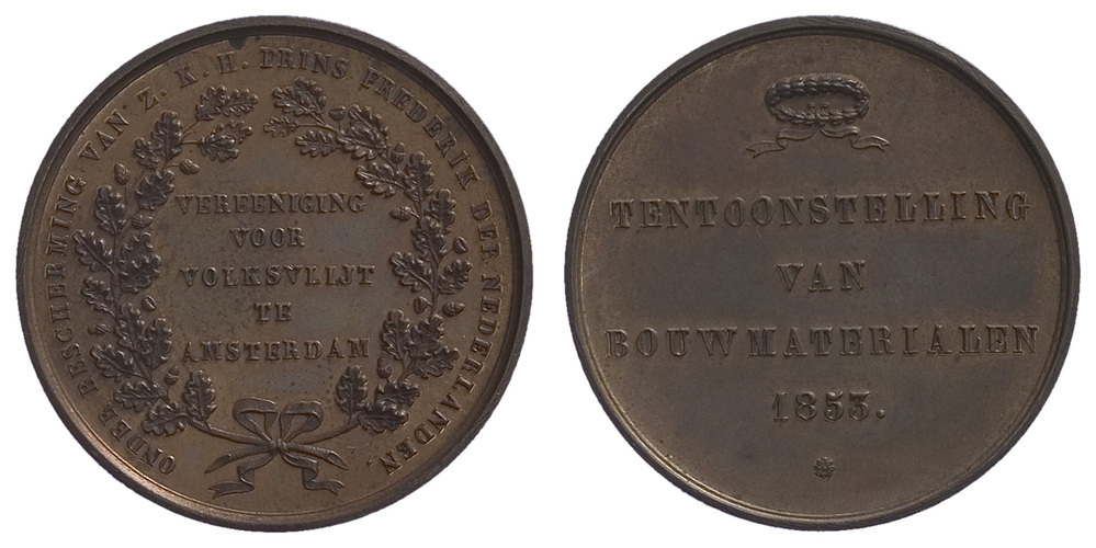 opschrift voorzijde: TENTOONSTELLING / VAN / BOUWMATERIALEN / 1853.