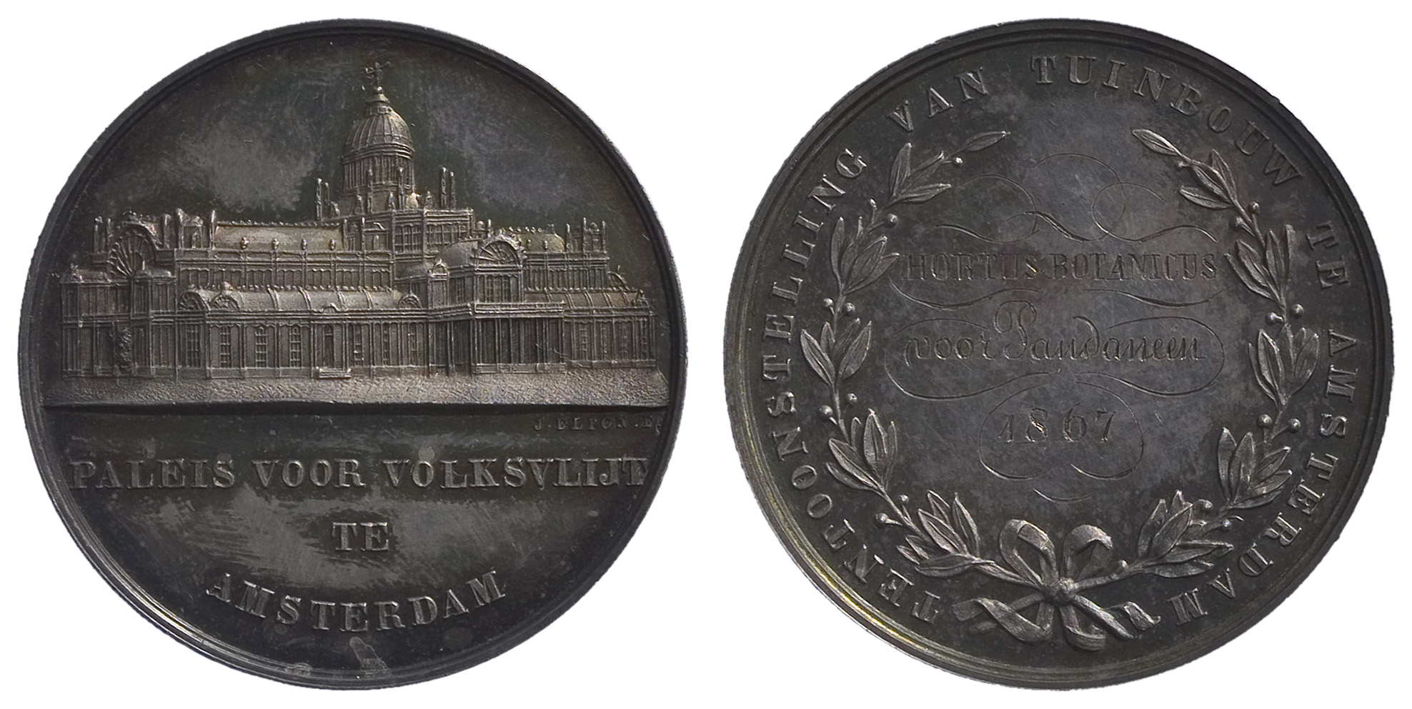 opschrift keerzijde midden: HORTUS BOTANICUS / voor / Pandaneen / 1867.