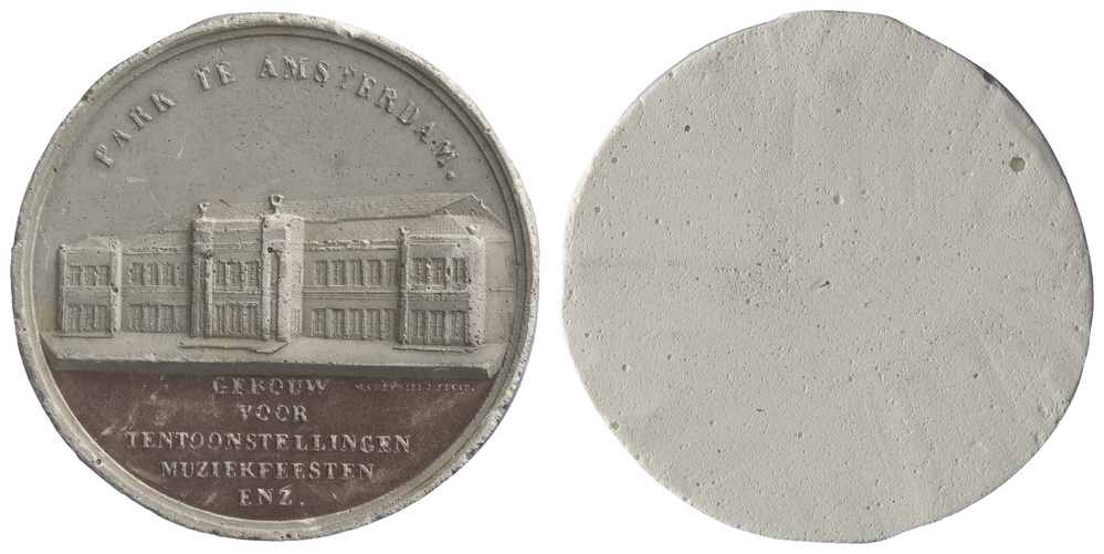 opschrift voorzijde in de afsnede: GEBOUW / VOOR / TENTOONSTELLINGEN / MUZIEKFEESTEN / ENZ.