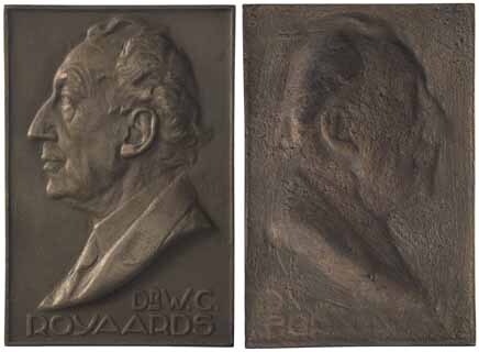 voorzijde: een rechthoekige staande penning met de beeltenis naar links van Dr. W.C. Royaards (1867-1929) boven een opschrift. keerzijde: vaag spiegelbeeld van de voorzijde.- Trefwoorden