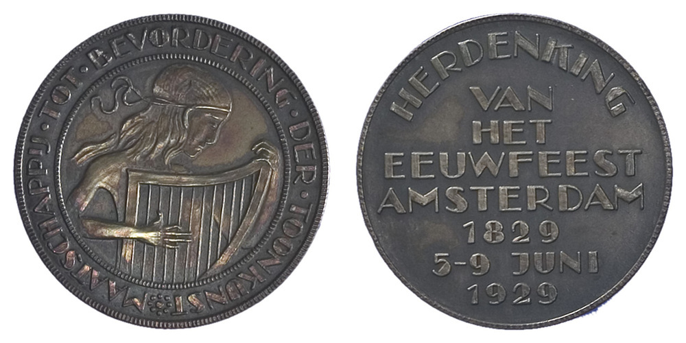 opschrift keerzijde: HERDENKING / VAN / HET / EEUWFEEST / AMSTERDAM / 1829 / 5-9 JUNI / 1929