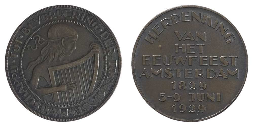 opschrift keerzijde: HERDENKING / VAN / HET / EEUWFEEST / AMSTERDAM / 1829 / 5-9 JUNI / 1929