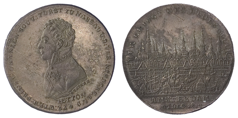omschrift voorzijde: FR : WILH : PRINZ V : ORANIEN SOUV : FÜRST ZU NASSAU : U: D : VER : NIEDERLAND